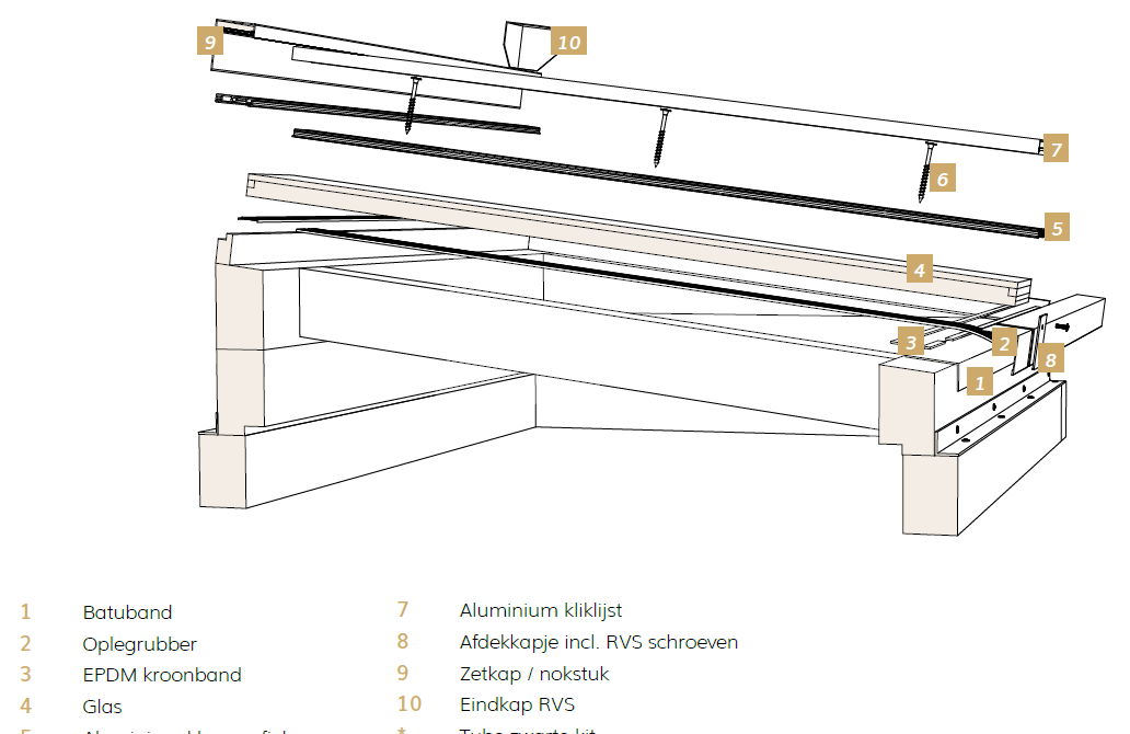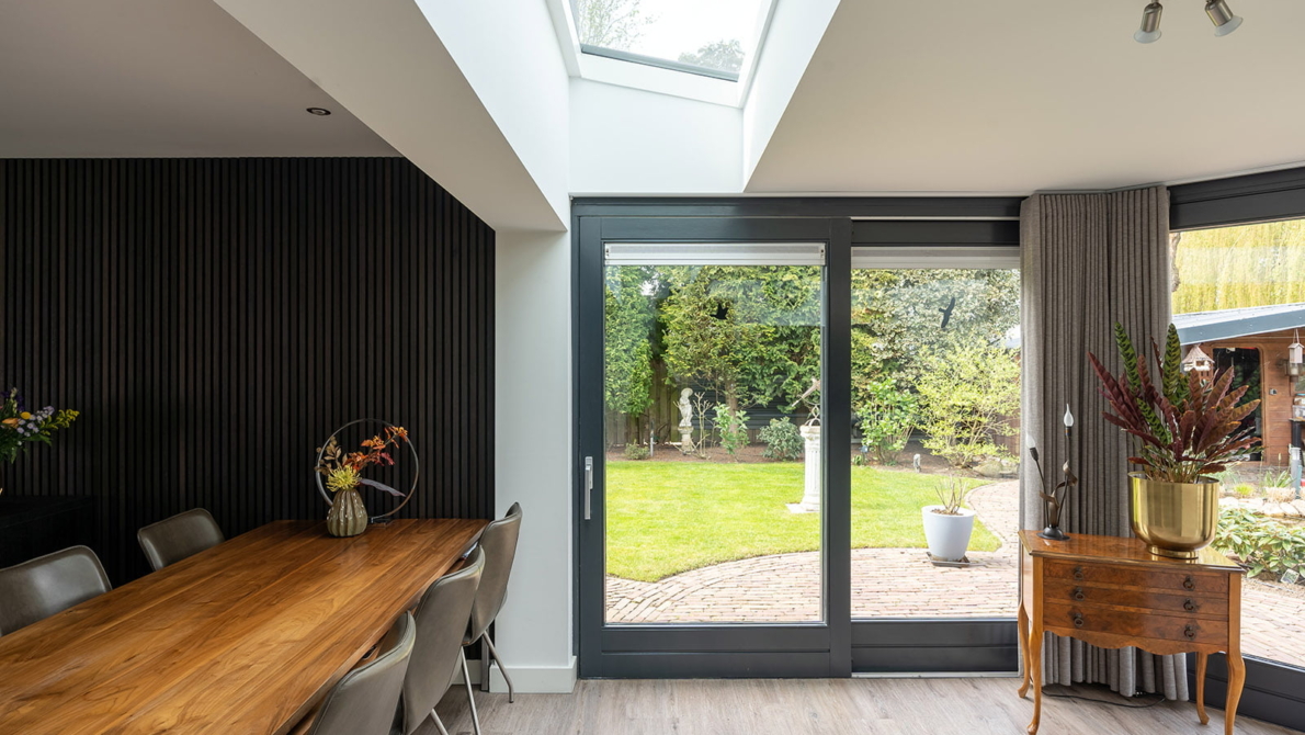 De frameless lessenaar lichtstraat is voor de liefhebber van een minimalistisch design. Het grote glasoppervlak creƫert een open gevoel in de woonruimte.