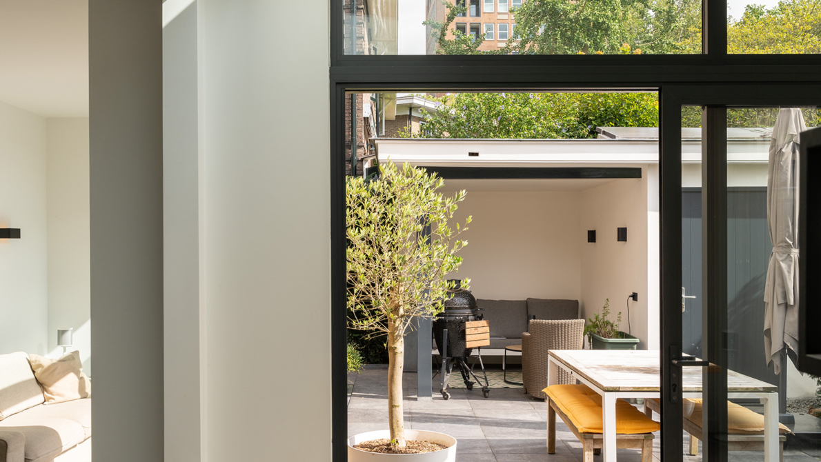 De buitenzijde is uitgevoerd in RAL 9005 (gitzwart), voor een moderne afwerking aan de buitenzijde. De binnenzijde in RAL 7021 (zwartgrijs) geeft een stijlvolle en luxe afwerking. Door de frameless constructie met slechts ƩƩn grote glasplaat ontstaat een naadloze en strakke uitstraling, die past bij veel verschillende interieurs.
