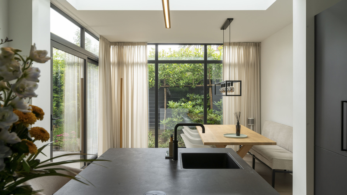 - EƩn groot glasvlak zonder frames zorgt voor een helder, ruimtelijk gevoel