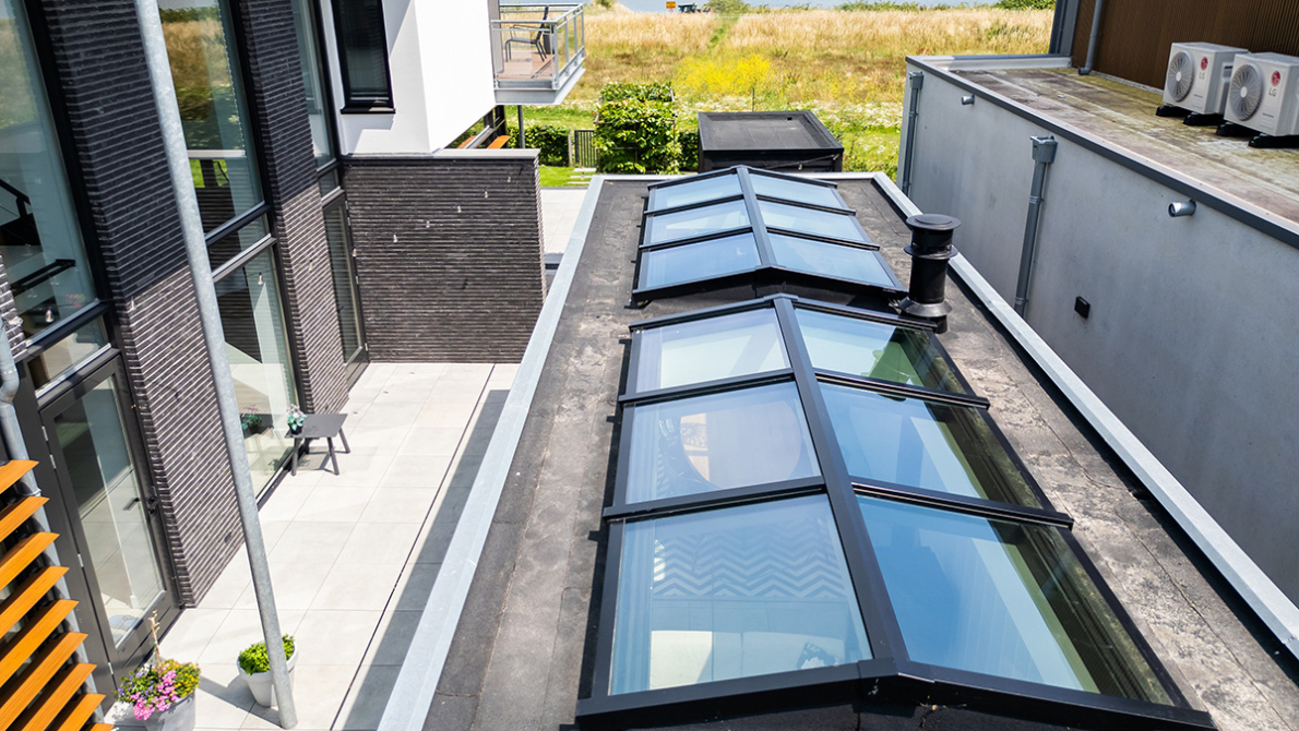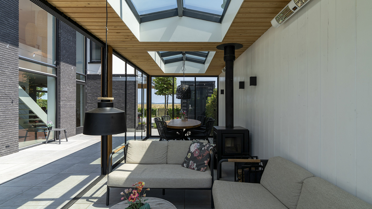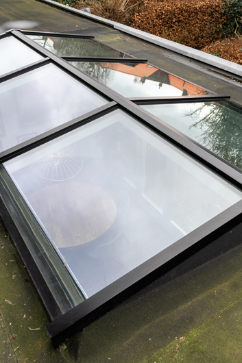Veel klanten kiezen voor een zadeldak vanwege de lichtopbrengst en het stijlvolle en moderne design van de lichtstraat. Dit model in een zwarte afwerking creƫert een modern contrast met een wit plafond. Bij een huis met verschillende zwarte details sluit dit perfect aan.